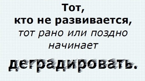 Важно осознать на всю жизнь, что развитие заключается в накоплении знаний, опыта анализа и применения этих знаний. Когда начинаешь понимать ценность знаний, то и ценность времени воспринимается иначе. Тратить время даже на просмотр телевизора уже становится недопустимой глупостью, когда есть возможность постигать ранее неведомые для тебя знания, которые меняют твою жизнь и открывают новые способности... Это ни с чем не сравнимые ощущения... Без знаний мы никто - мы рабы чужих интересов ...